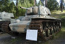 Представленный в музее образец как раз и является тем самым трофейным танком. Он был изготовлен в Ленинграде (ныне - Санкт-Петербург) на заводе имени К.Е.Ворошилова. Танк использовался в Финской армии в том числе и как командная машина майора Хейкки Миккола летом 1944 года. Танк перевезен в Танковый музей в 60-х годах и является одним из двух сохранившихся в мире машин этого типа.