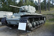 Представленный в музее танк "КВ-1м" изготовлен в 1942 году. Финны захватили его в бою у электростанции на Сювяри в Апреле 1942 года, после чего восстановили и использовали в своих войсках. Танк принимал участие в сражении у Портинхойка в 1944 году, тогда же советский Т-34-85 нанёс ему несколько попаданий из своей 85-мм пушки. Следы от тех попаданий ещё видны на передней броне танка.