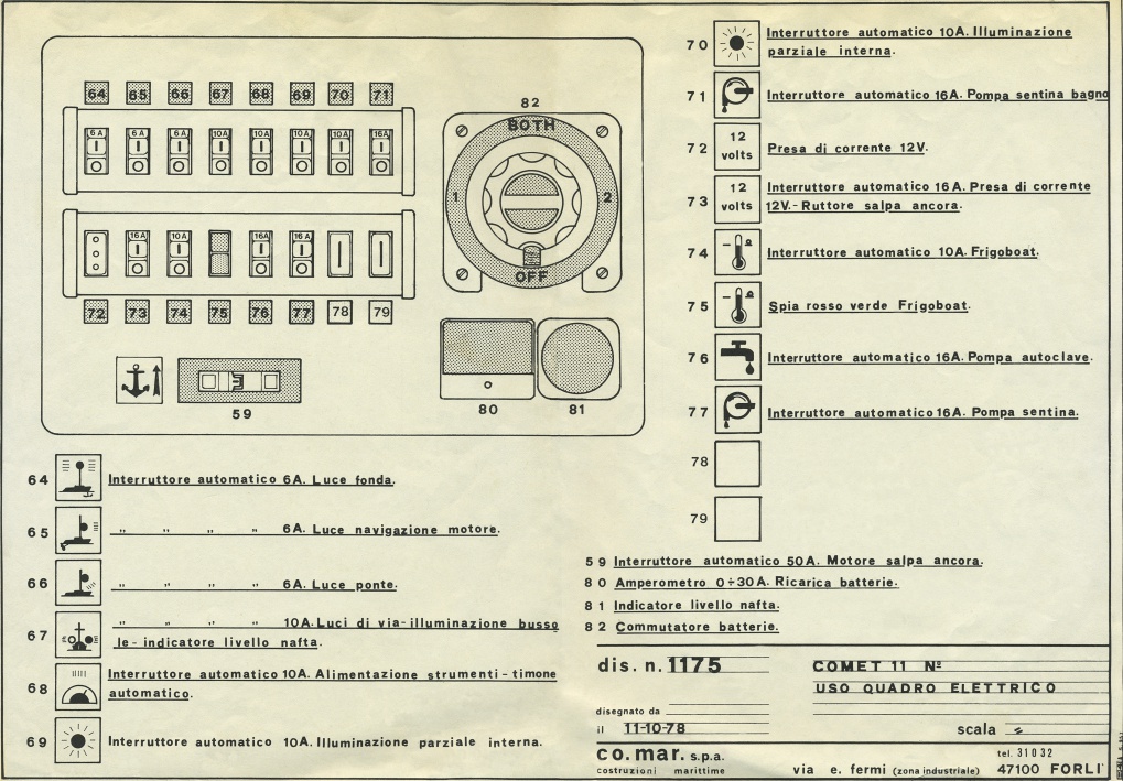 Comar Comet 11. Uso Cuadro Elettrico